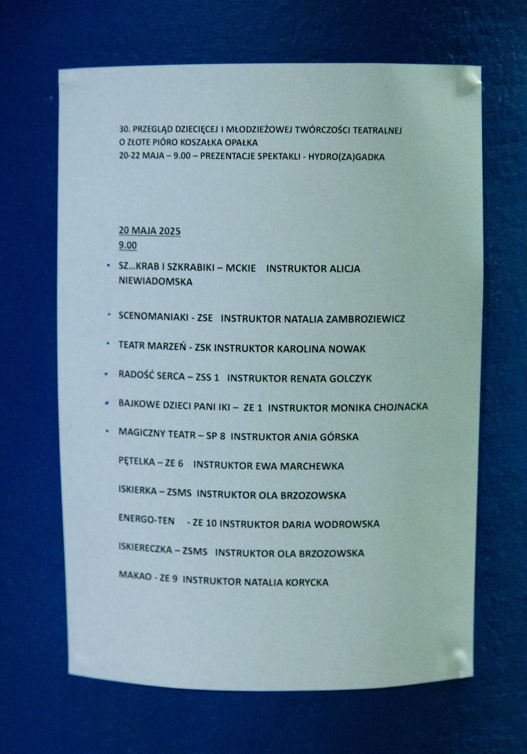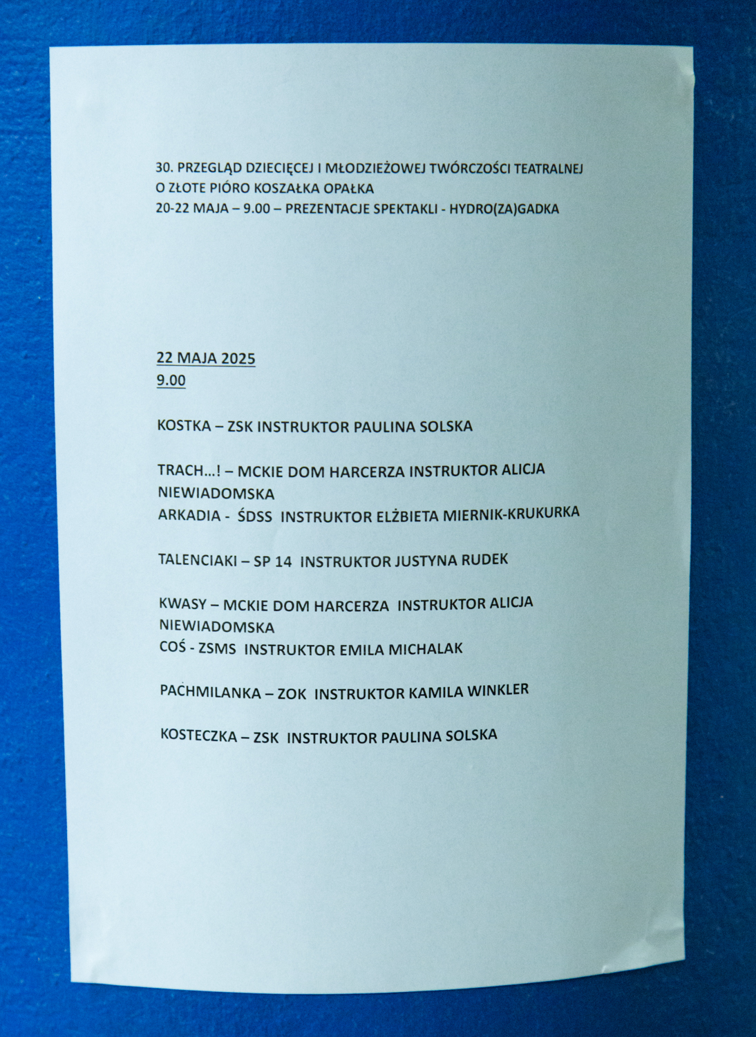 30. Przegląd Dziecięcej i Młodzieżowej Twórczości Teatralnej „O Złote Pióro Koszałka Opałka” – przegląd