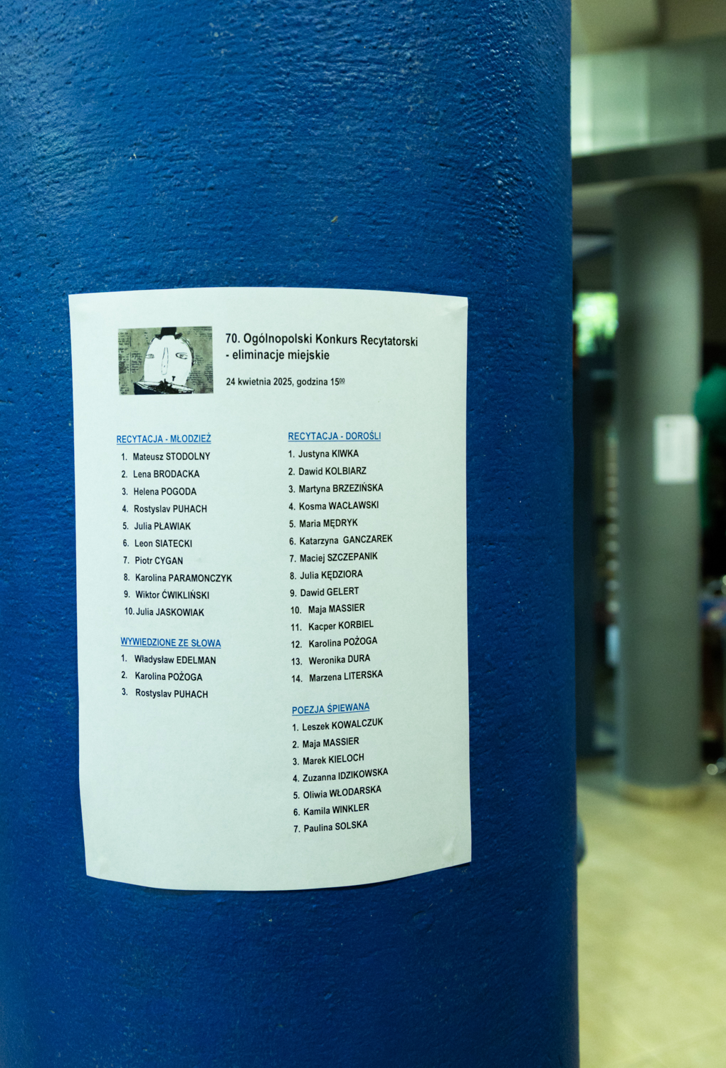 70. Ogólnopolski Konkurs Recytatorski – eliminacje miejskie – finał