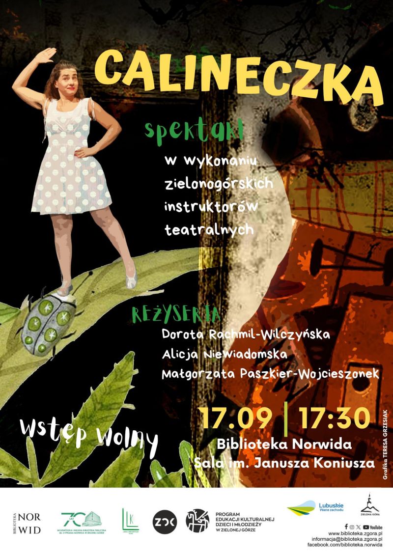 W środę 17 września o godz. 17.30 w sali im. Janusza Koniusza w Wojewódzkiej i Miejskiej Bibliotece Publicznej im. Cypriana Norwida w Zielonej Górze zapraszamy na wyjątkowy spektakl „Calineczka”. To barwne, pełne humoru i ciepła przedstawienie, które zachwyci najmłodszych widzów oraz ich rodziców.