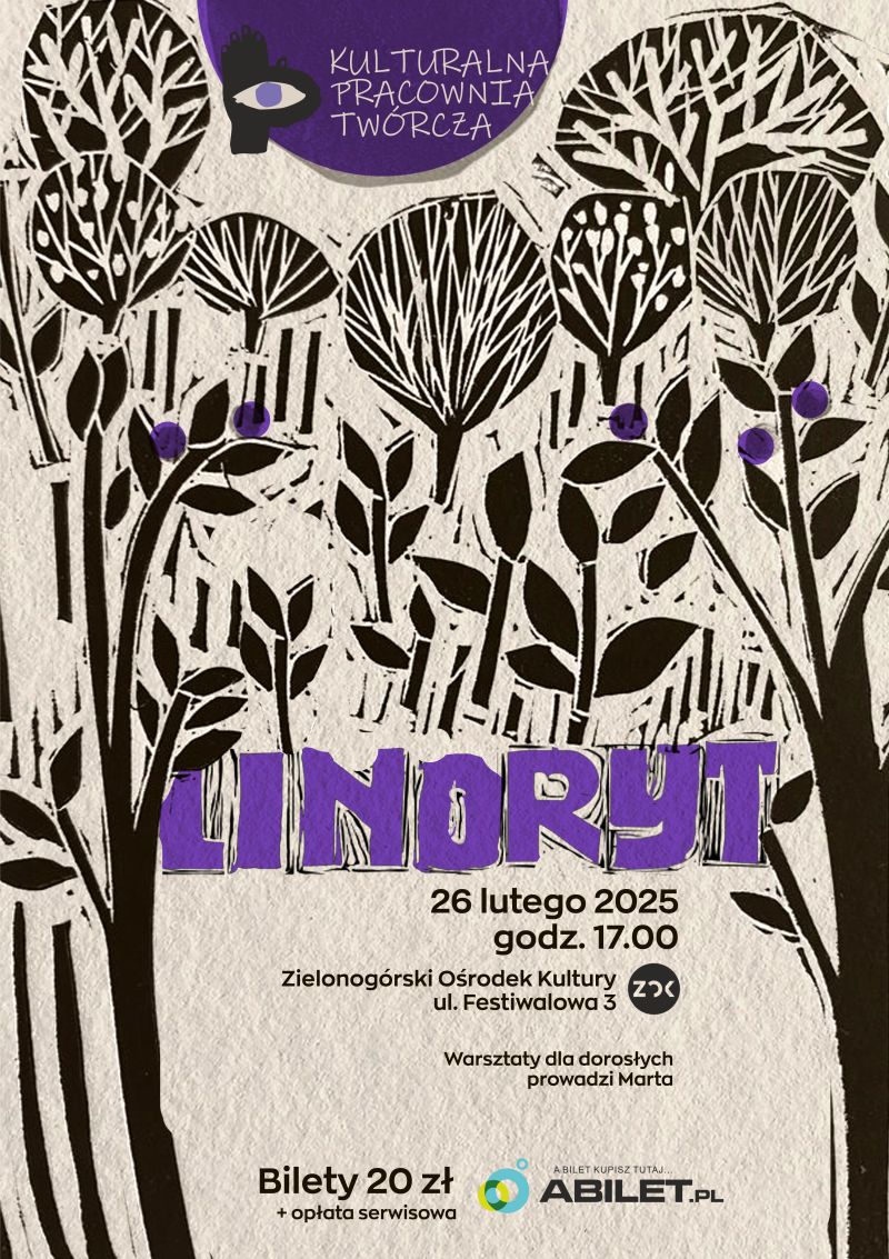 Tym razem uczestniczkom i uczestnikom Kulturalnej Pracowni Twórczej proponujemy zajęcia z linorytu. Czym jest linoryt? Jest to nic innego jak technika druku wypukłego, tylko zamiast w drewnie (jak w przypadku drzeworytu) rzeźbi się w linoleum – stąd też nazwa tej techniki. Podczas warsztatów każda uczestniczka i uczestnik będzie miał możliwość wyrycia w linoleum obrazu lub wzoru, a następnie przeniesienie go za pomocą farby drukarskiej na kartkę papieru czerpanego. Instruktorką, która przeprowadzi nas przez proces tworzenia linorytu będzie Marta Trawińska, znana jako Linorytka. Polecamy zajrzeć na jej konto na IG, tworzy przepiękne prace TUTAJ